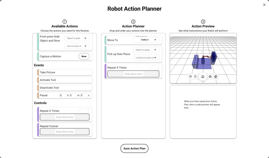 - Quickly train/retrain robots by using our low-code/no-code demonstration-based training package